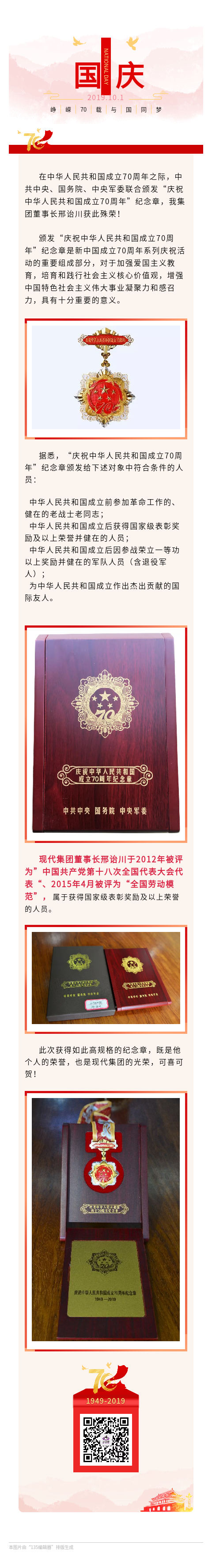 董事長邢詒川獲頒“慶祝中華人民共和國成立70周年紀(jì)念章”